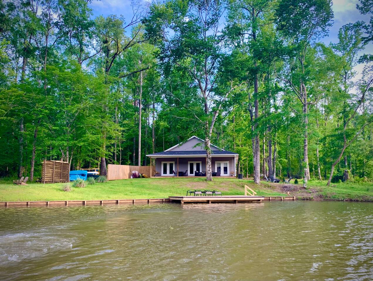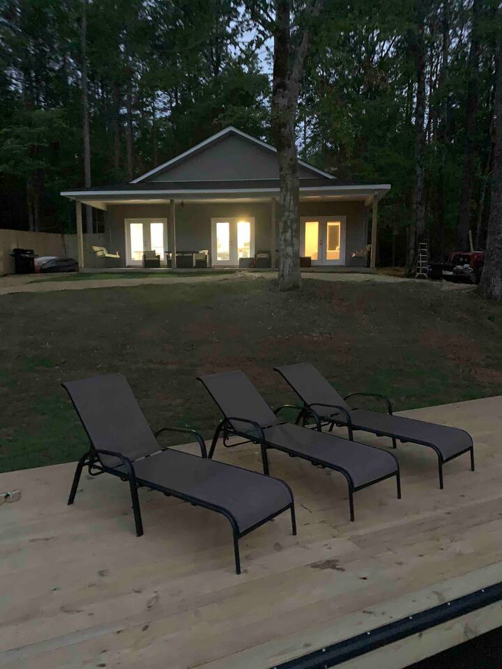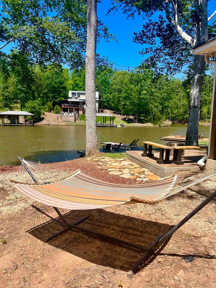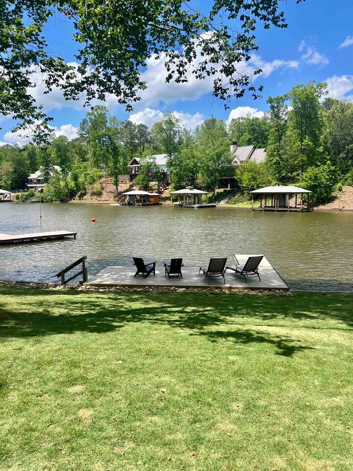 Creekside Cottage is a waterfront retreat tucked away on a quiet and peaceful area of Lake Martin. Relax on the shady back porch & watch the herons fly by or fish jump out of the water. Or during summer months, park your boat at the dock and head out for a day of adventure. Creekside Cottage has the best of both worlds! Enjoy all the amenities that it has to offer including kayaks, grill, fire pit, fishing & dock! Can be rented with 2 tiny cabins & a cottage next door to sleep up to 24!