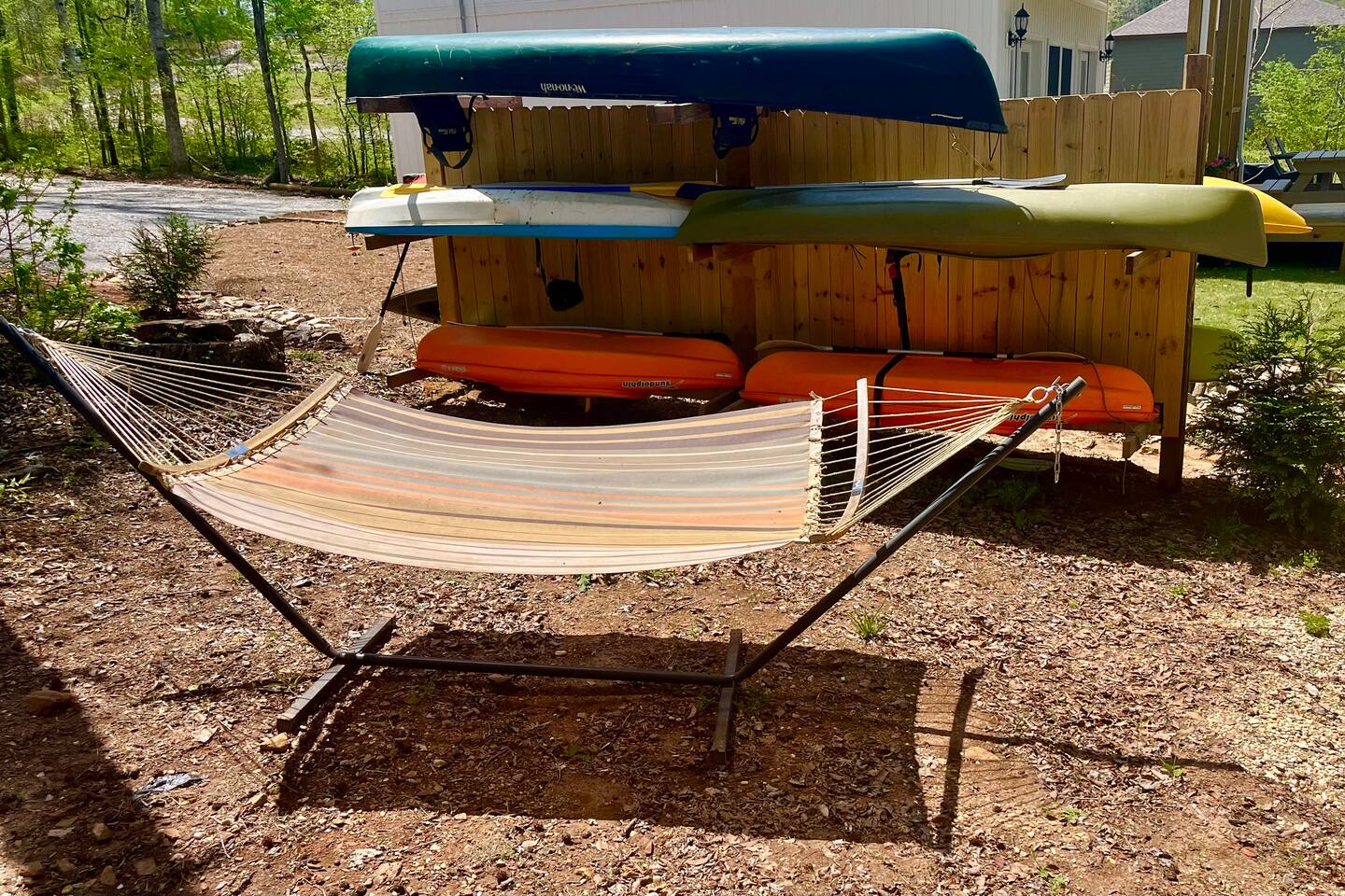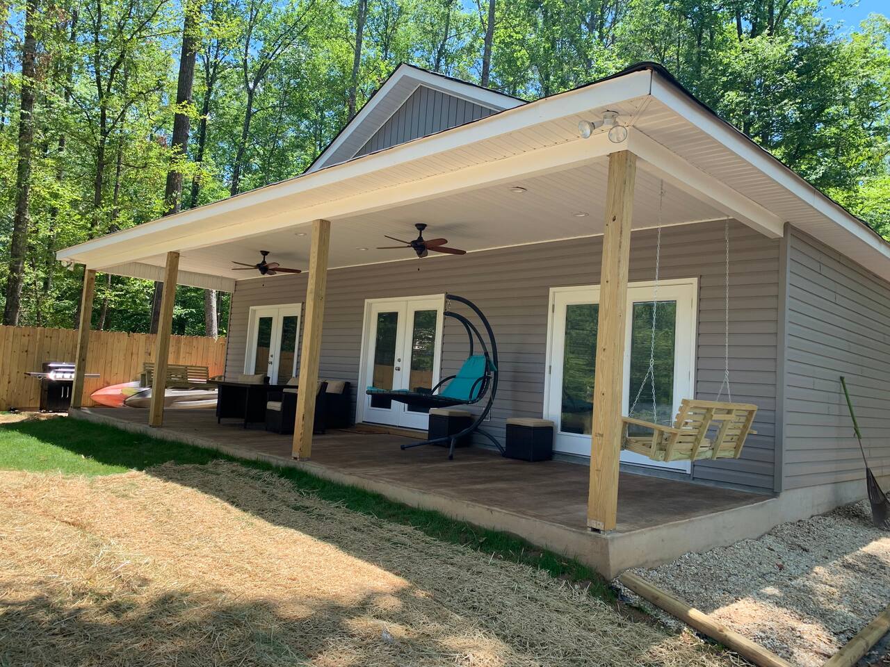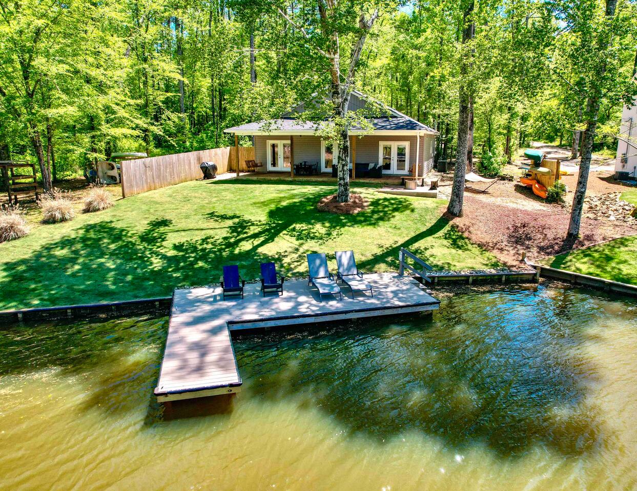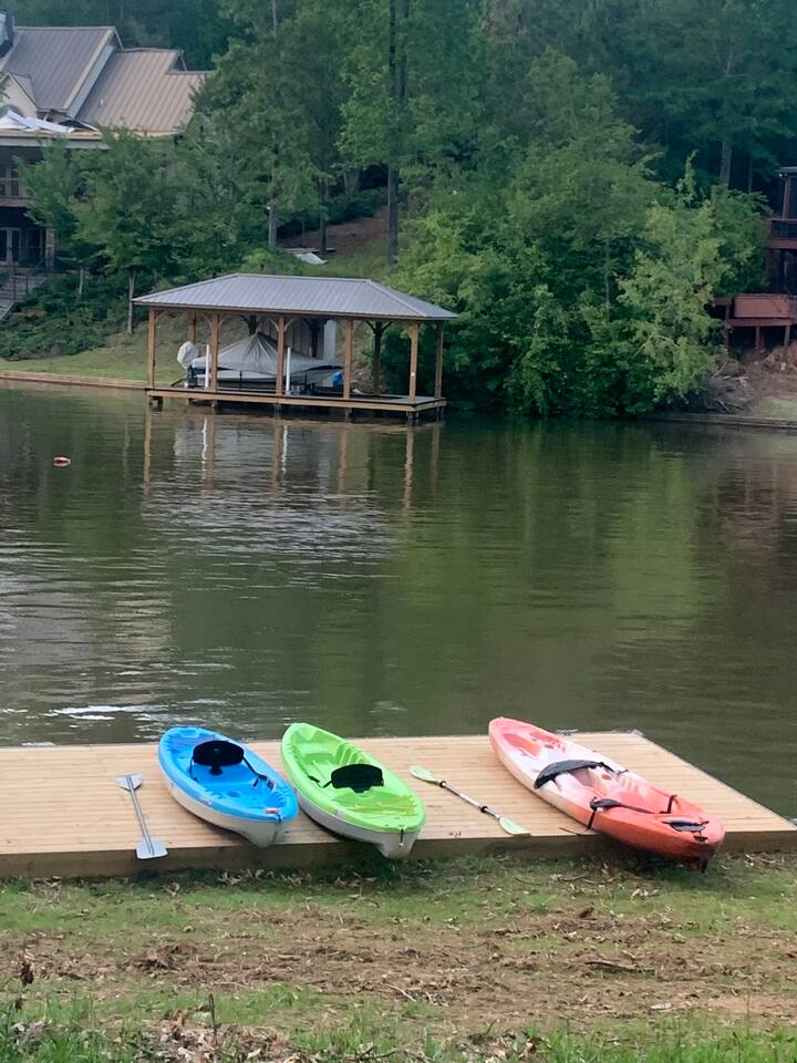 Activities and Amenities: Private dock, kayaks, cornhole, gas grill, fire pit all included at no extra charge.