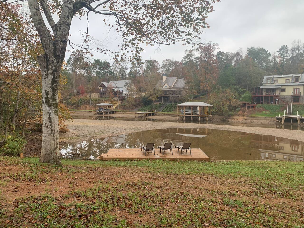 We have full water access April – October of each year. Between November-March, the water level is controlled by the Lake Martin Dam and the levels decrease. The property will not accommodate a boat to be docked during this time. The water is shallow in this part of the creek (only 4 feet @ dock during full pool). No diving is allowed from the dock. If bringing in a boat to the dock, please make sure you stay to the far left of the creek coming in and stay to the far right of the creek going out as that is the deepest part. Also, make sure you heed the buoys in the area as they indicate shallow water levels.