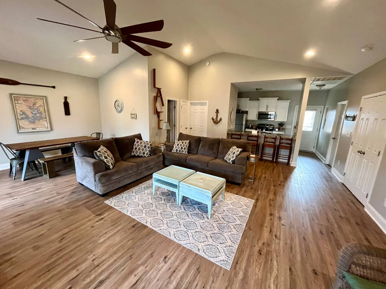 The property is just minutes from Lakeside Marina @ Bay Pines, Peanut Island, Big Beach, Historic Smith Mountain and DARE park. It is conveniently located just 30 minutes from Auburn, 45 minutes from Montgomery, 1 1/2 hours from Birmingham, and 2 hours from Atlanta. Beautiful Lake Martin covers 44,000 acres and features pristine blue-green waters year-round. Boat and wave runner rentals are available for your enjoyment or feel free to bring your own. You will find the lake full of catfish and bream for fishing. There are several hiking trails for off-road adventures. The lake community bustles with activity year-round with concerts and festivals for your entertainment. The lake offers cuisine from casual dining to 5 star quality. Try Oskar’s Cafe or Niffer’s Place for a more casual meal or Spring House for your special night out! Enjoy live bands and great pizza at Chuck’s Marina!