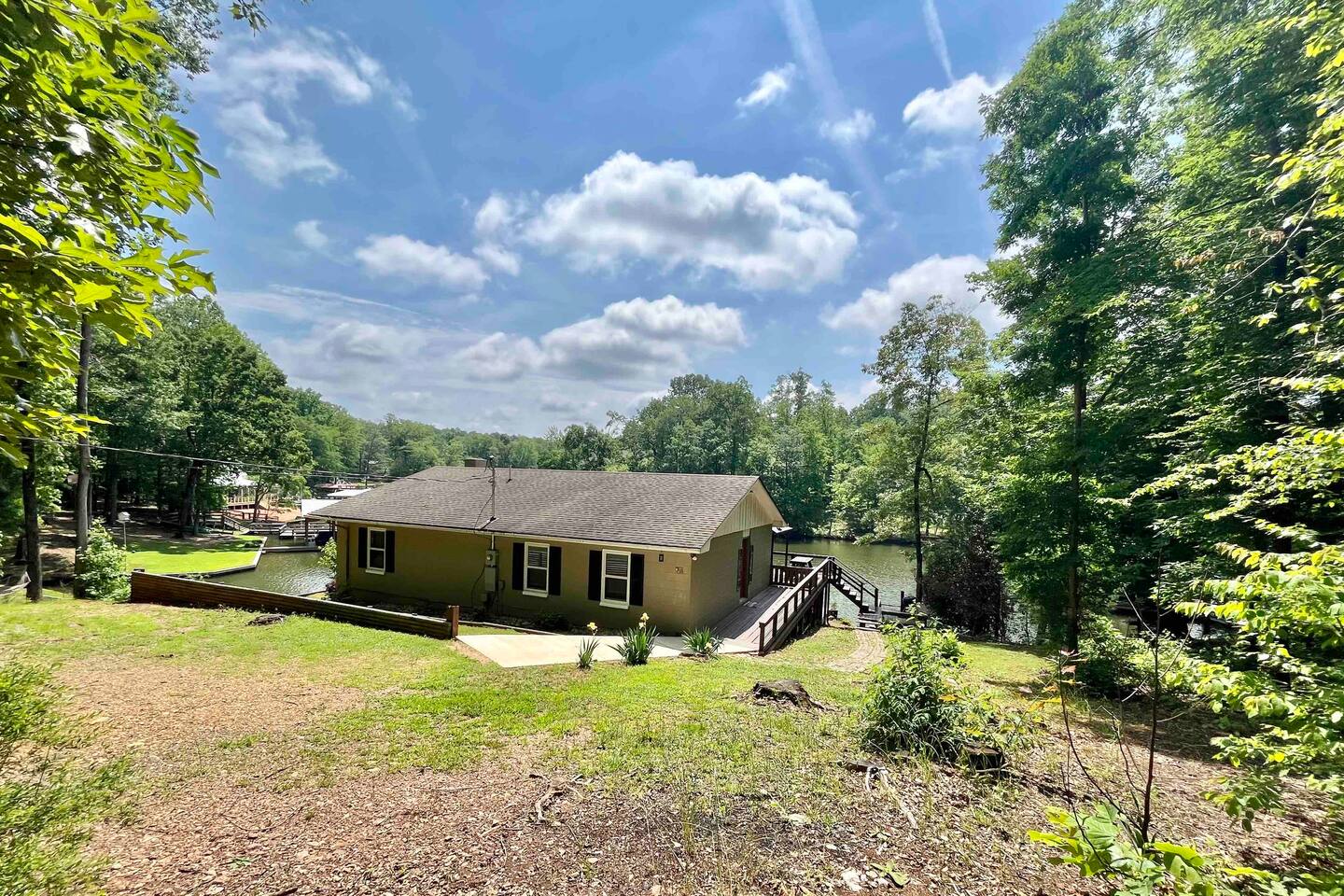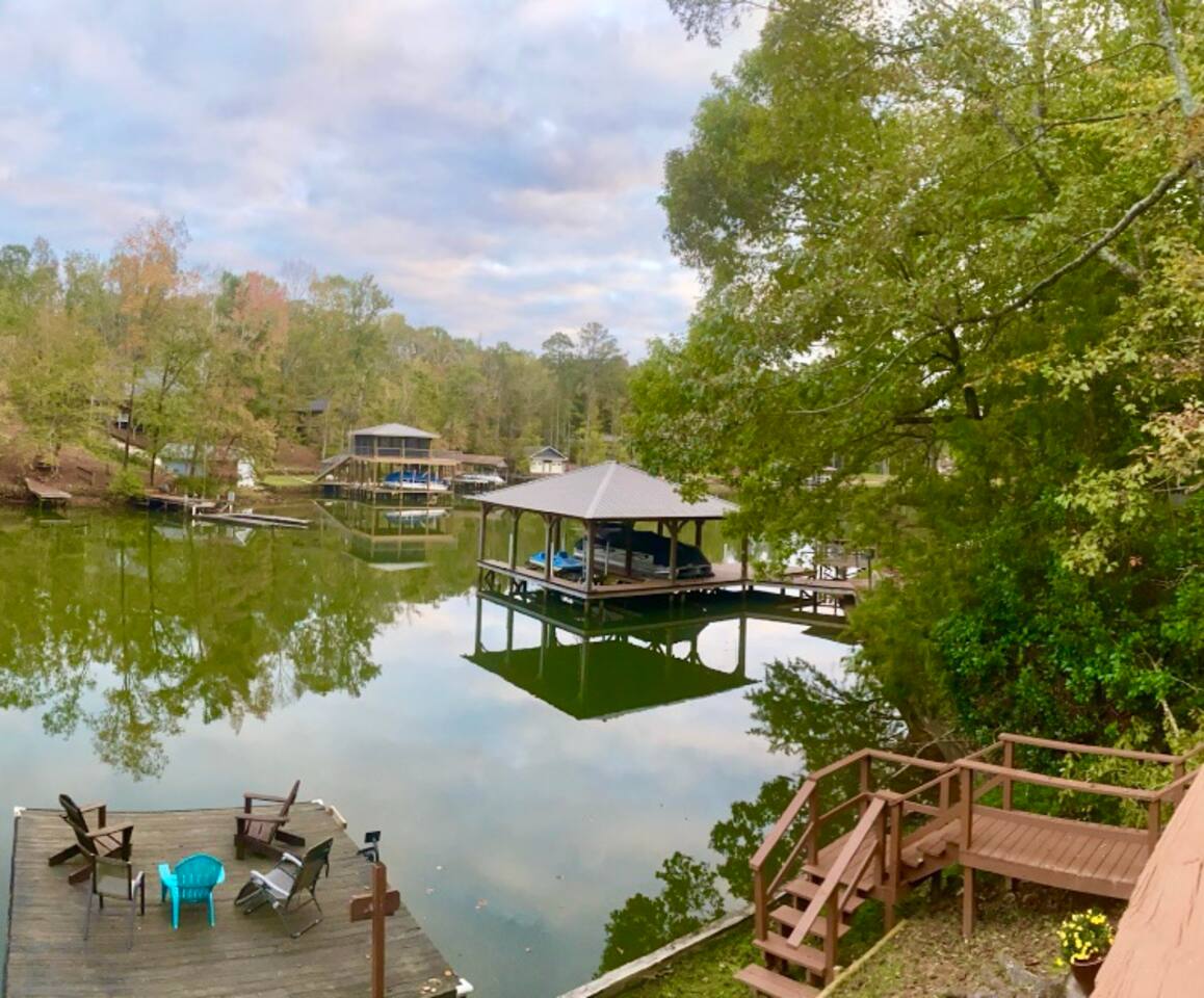 A Southern Comfort lakefront cabin on an acre in a quiet neighborhood with beautiful water views from back deck. Tucked away in the woods on a quiet and peaceful area of Lake Martin. Gentle sloping wooded yard with plenty of room to relax and play. Very low boat traffic/wake. A little slice of heaven located in Manoy Creek area of Lake Martin!