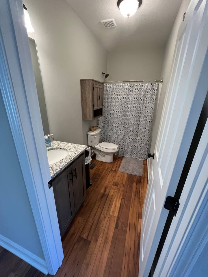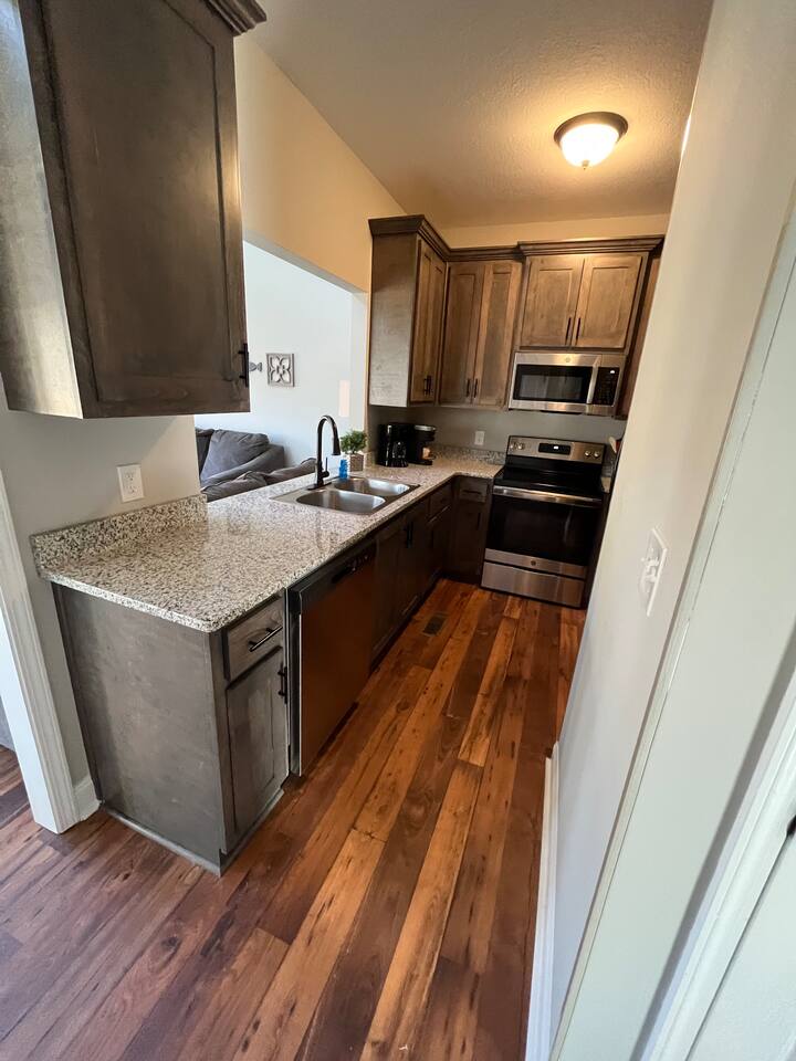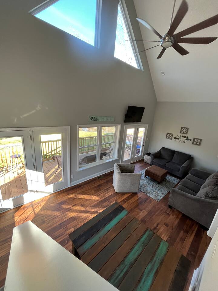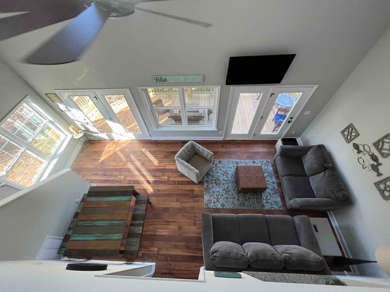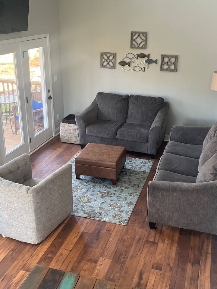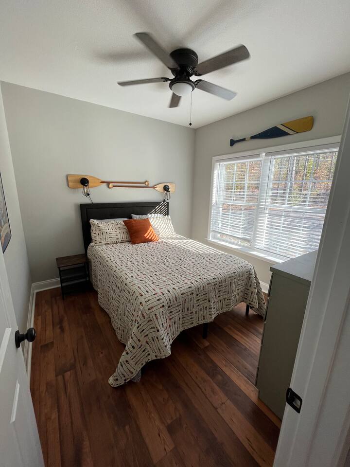 2 story home with 3 bedrooms and 2 bath. 1st floor includes 2 queen bedrooms, bathroom, kitchen and living area. 2nd floor includes loft, primary king bedroom and bath. Private dock, kayaks, cornhole, gas grill, wood fire pit are all included at no extra charge. Walk out wading area with mini beach. Great for children & kayaking. Deeper water is about 50’ out.